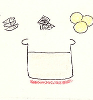 3. 익으면 간장에 조린다. 멸치 또는 새우 또는 잣을 넣는다.