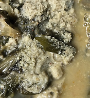 6. 마늘 빻아 넣는다. 대파 썰어 넣는다. 볶는다.