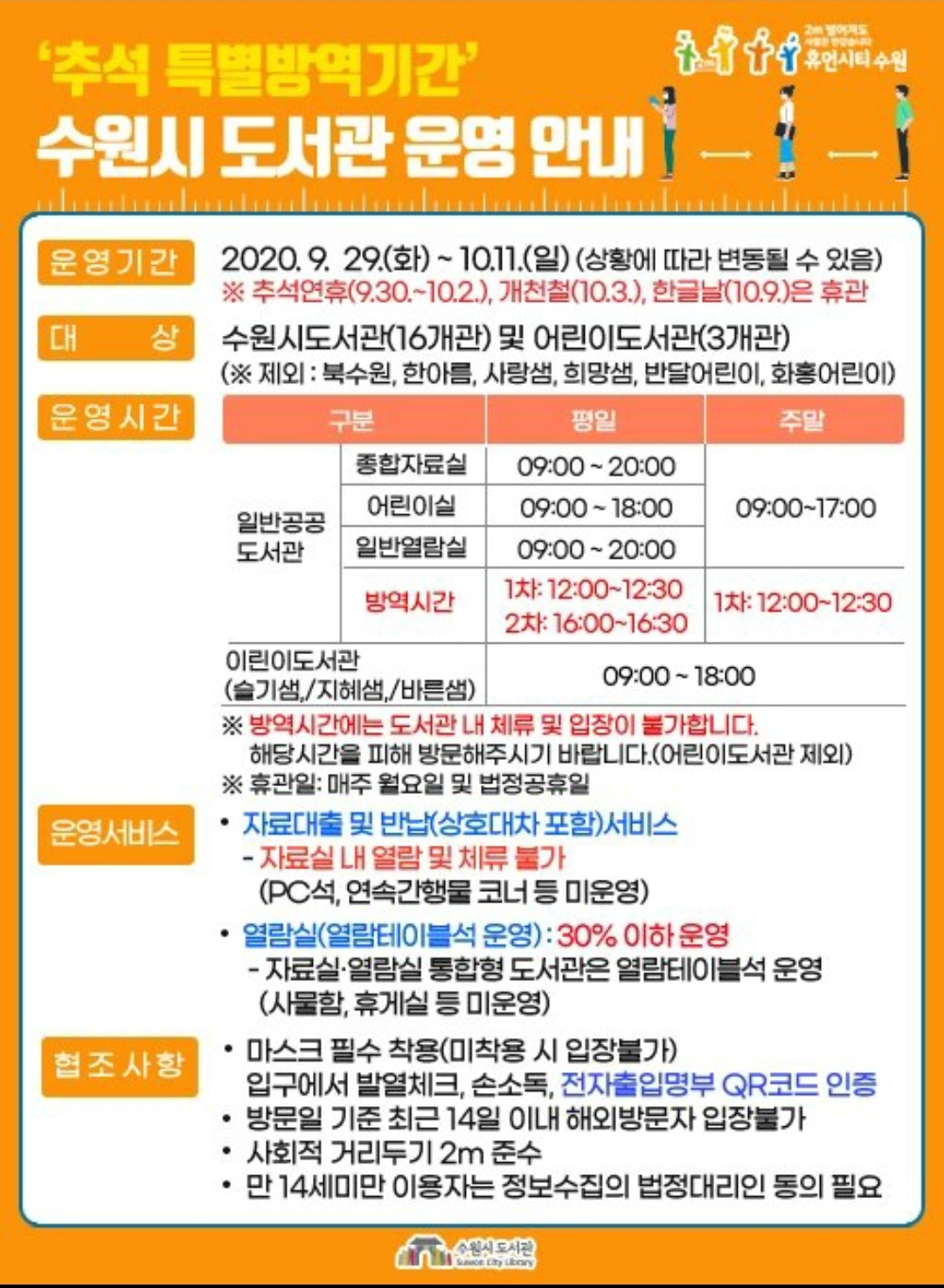9월 29일부터 10월 11일까지 한정된 기간동안 일부 도서관을 제외하고 제한적 개방을 실시하고 있었는데요.