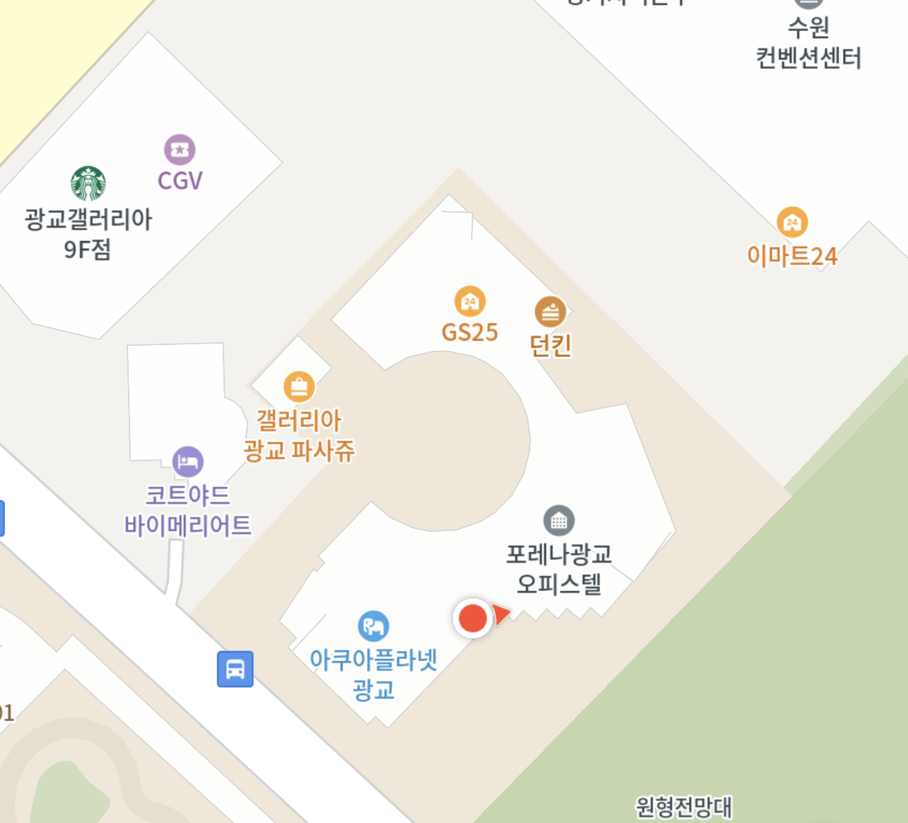 아쿠아플라넷 광교는 광교 갤러리아 백화점 옆건물에 있는 데요. 정확히 말하면 포레나광교 오피스텔 건물의 지하 1층에 위치한 시설입니다. 기본적으로 포레나 광교 오피스텔의 주차장 일부를 활용해서 주차를 해야하기때문에... 그렇게 주차공간이 넓다라는 느낌은 없었습니다. 주말이고 연말이라 그런것일수조 있긴한데... 3바퀴정도 돌고 겨우 자리를 찾았다는... ㅠㅋㅋ