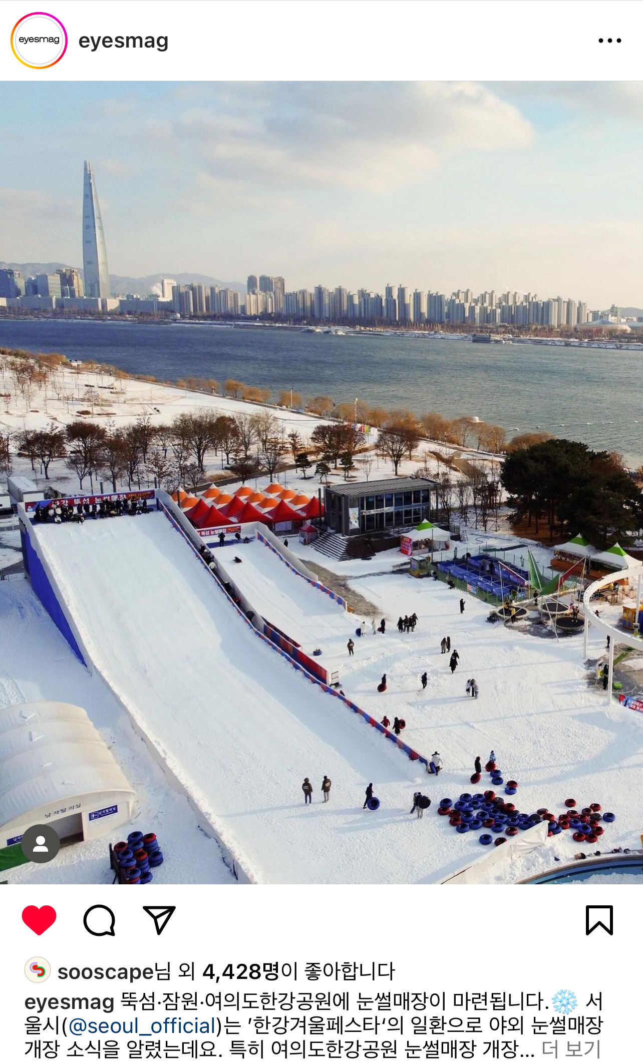 한강에 눈썰매장이나 시청앞 아이스링크장을 가볼까.. 싶기도 하다.