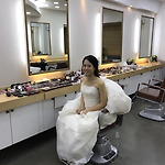 노주원헤어그라프에서 2시간 반 메이크업 받아 변신! 드레스 샵에서 나오신 헬퍼 이모님이, 우리가 전에 셀렉해두었던 3벌의 드레스와 볼레로, 귀걸이, 티아라, 헤어밴드, 웨딩슈즈, 웨딩브라, 턱시도, 나비넥타이 가져와서 입혀주셨다. 첫 번째로 입은 풍성한 A라인 드레스. 이날 눈이 무지 많이 내려서 택시도 잘 안 잡히고 1층 복도에서 덜덜 떨면서 기다리고, 길이 얼어서 느릿느릿 기어가서 30분이나 늦고 아무튼 셋 다 무지 고생했다. 생각했던 것보다 굉장히 허름해서 놀랐다. 이런 누추한 곳에서 그렇게 멋진 작품이 탄생하는구나. 사진작가 한 분과 도우미 한 분이 우리의 웨딩촬영을 지도하신다. 시키는 대로만 하면 화보가 탄생한다. 특히 허리를 꼿꼿이 펴야 한다. 부케를 잡거나 서로 손을 잡거나 ..