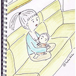 오랜만에 딸그림. 주위에서 "딸바보" 다됐다며, 적당히 하라는 피드백을 받고 좀더 다양한 그림을 그려보려고 최근에는 나도 그려보고, 다른 사물도 그려보고 ㅎㅎ 그런데 누가 뭐라해도 내게 그림이라는 취미를 안겨준건 딸래미가 생기고 나서 부터이니, 여러 대상중에서도 딸그림 그리는게 가장 즐겁다 ㅎㅎㅎ 오늘의 그림은 수유패드를 모자로 쓴 딸래미. 아내가 모유수유를 마치고 나면 항상 찾게되는 것이 있다. 그건 바로 수유패드. 정신없이 아가 밥주느라 행방이 묘연해진 수유패드는 찾다보면 이불밑에 깔려있거나 바닥에 떨어져 있는 경우가 다반사이다. 엄마가 자기 밥주느라 이렇게 고생하는데 엄마의 수유패드 좀 챙겨주라고 머리위에 올려줬는데 뜻밖의 귀여움이 폭발. ㅎㅎㅎㅎ 사랑해 우리딸~ 크면 더 예쁜 모자 선물해줄게 ^^